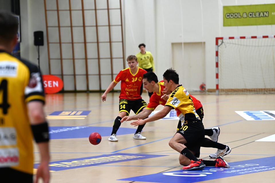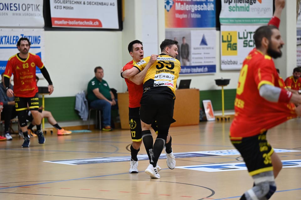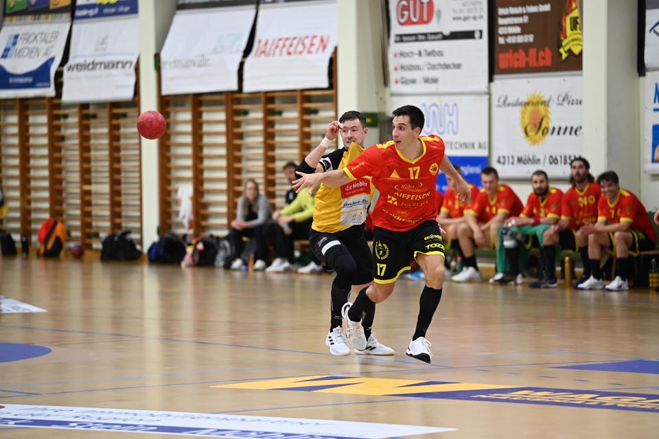 Die Möhliner Handballer starteten gut, nach Jan Waldmeiers erstem Treffer im ersten Angriff, zog auch Linkshänder Justin Larouche nach und Lucas Grandi erhöhte zum 3:0. Benjamin Blumer zeichnete sich mit zwei Paraden, gegen Mathias Müller und Karlo Ladan, aus und Grandi traf später, nach Ballklau zur Vier-Tore-Führung. Stäfas Trainer Lukas Maag musste früh die Auszeit nehmen (6.), wechselte Spieler aus und nach zwei Tempo-Toren und besserem Zugriff in der Abwehr, holte sein Team schnell auf. Möhlins Flügel Valentin Mahrer scheiterte an Keeper Luca Frei und technische Fehler machten sich bemerkbar. Robin Santeler zeichnete sich mit der ersten Siebenmeter-Parade aus (9.) und Larouche erhöhte wenig später zum 5:3 (10.). Stäfa erhöhte weiter den Druck, den Spielfluss und zwang das Heimteam zu überhasteten Abschlüssen. Torhüter Luca Frei lief langsam warm. Da sich bei Möhlin nun die Fehler häuften, und vorne die Tore von wechselnden Schützen ausblieben, nutzten dies die Gäste gnadenlos aus und glichen nach zehn Minuten erstmals aus. Luc Honegger traf zur erstmaligen Stäfner Führung in der 13. Minute. Noch machten beide Teams Fehler und mussten Zeitstrafen kompensieren, aber die mangelnde Chancenauswertung beim Heimteam gab den Gästen Selbstvertrauen und Aufwind. Tolle Parade dann von Benjamin Blumer in der 16. Minute, beim 6:6. Doch wenig später zog Stäfa, auch nicht makellos, zuerst mit einem, dann mit zwei Treffern (25.) und bis zur Pause gar mit fünf Toren davon. Den Fricktalern gelang in den letzten sechs Minuten nichts Zählbares, trotz einer Überzahlsituation. So lastete die Hypothek von minus sechs bis zur Pause schwer. Ein Glanzpunkt setzte Robin Santeler, der noch in der 29. Minute bereits den zweiten Siebenmeter parierte.