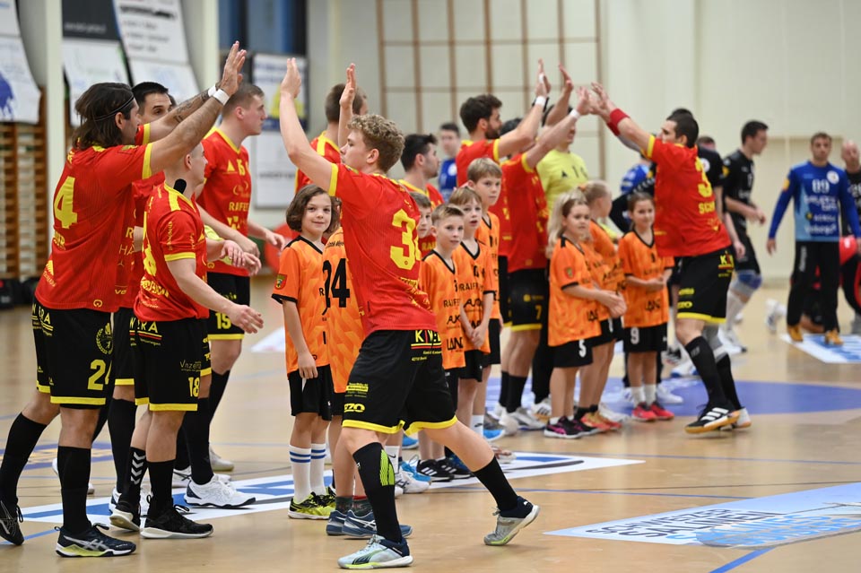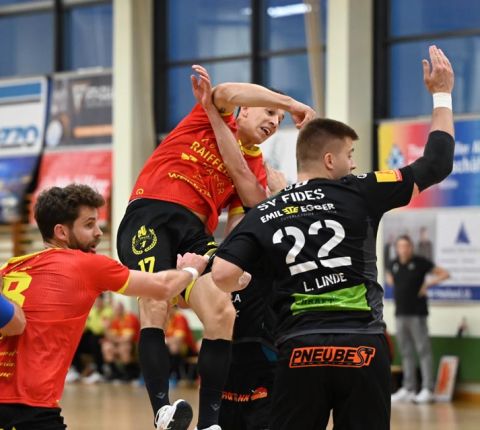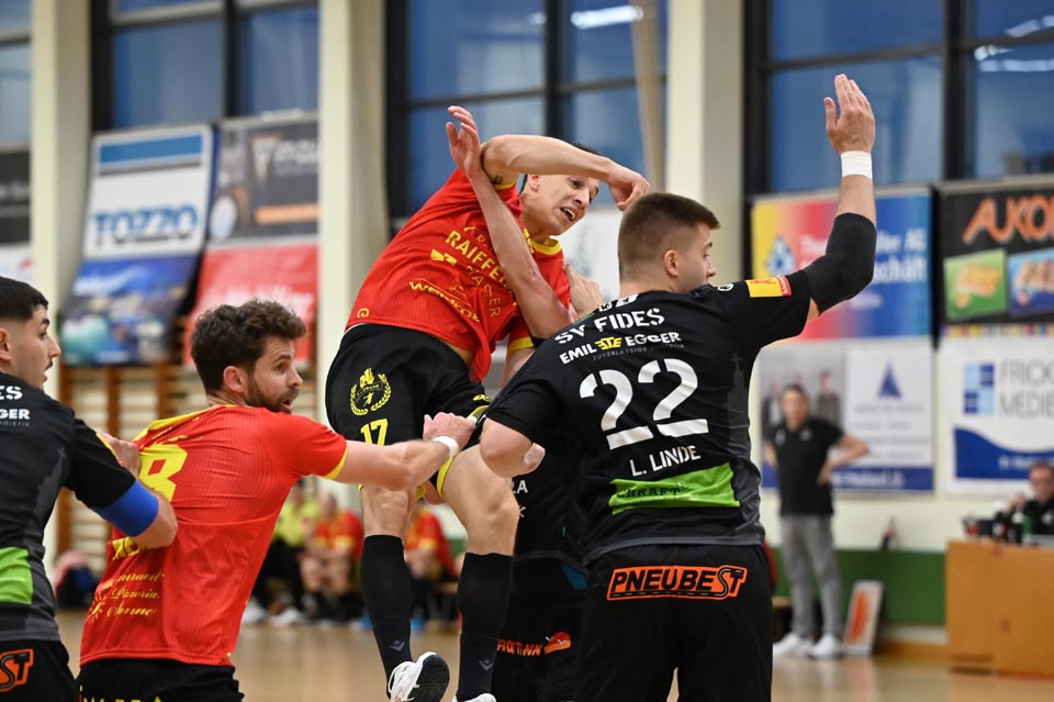 Die Partie wurde durch die beiden Schiedsrichter Luca Odermatt und Benjamin Rachad geleitet und sie lösten ihre Aufgabe gut. Der TV Möhlin brauchte etwas, um in die Partie zu kommen, reagierte erst in der vierten Minute mit dem ersten Treffer, zuvor hatte Lionel Mirdita für die Gäste getroffen. Wenig später stand das Heimteam kurzzeitig mit vier Feldspielern auf der Platte, aber Benjamin Blumer parierte in dieser heiklen Phase den Ball von Jonas Linde und es blieb beim 2:1 (8.). Fides, das mit Robert Weber, ein gestandener ehemaliger Bundesligaspieler auf der Spielmacherposition hatte, glich ein letztes Mal in der 15. Spielminute zum 5:5 aus. Danach unterliefen Weber ein paar Fehler zu viel, was Möhlin clever nutzte und durch Treffer ins leere Tor zu Zählbarem verwandelte. So nahmen die Gäste eine erste Auszeit (18.). Jonas Schmid erhöhte, kassierte aber kurz darauf die Zeitstrafe. Weil nun das Tor erneut verwaist war und die Bälle regelmässig in der Möhliner Abwehr hängen blieben, trafen mal Blumer selbst aus dem eigenen Tor oder Lucas Grandi und Jan Waldmeier, nach schnellen Anspielen, zum 13:9 (23.). Auch der nächste Siebenmeter von Grandi ausgeführt und Treffer von Justin Larouche und wieder Grandi, brachten den leichten Vorsprung zum Pausenstand von 17:14.