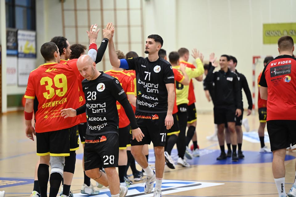 Es war diese Präsenz und Konzentration, die Möhlin auch in der zweiten Halbzeit ausspielen konnte. Und ein torgefährlicher Lucas Grandi, der seine 13 Würfe mit viel Überzeugung im gegnerischen Tor platzierte, zuletzt zum 21:15 in der 35. Minute. Wenig später musste Weber, nach unglücklichem Schlag ins Gesicht, mit Nasenbluten das Feld verlassen. Er fehlte fortan dem Team. Trotzdem versuchte Fides mal vom Flügel, mal vom Rückraum Tore zu werfen und blieb bis in der 43. Minute zwar mit minus vier hinten, aber dran. Nach Jan Waldmeiers und Jonathan Ulmers Treffern zur erneuten Fünf-Tore-Führung, legte Julian Rauch erneut die Grüne Karte. Julian Schlachter verkürzte auf 26:22 und wenig später Lionel Mirdita zum 26:23. Die nächste wichtige Reaktion kam von Sebastian Kaiser und weil nun das Selbstvertrauen entfacht war, gab sich die ganze Möhliner Offensive keine Blösse mehr und liess vier Minuten vor Abpfiff das 34:28 folgen. Da änderte auch die letzte Auszeit der Gäste und eine nächste Zeitstrafe gegen Grandi nicht mehr viel am Spielgeschehen. Die Männer von Zoltan Majeri feierten noch die letzte Parade von Robin Santeler, ehe sie aufs Feld stürmten um zu jubeln.