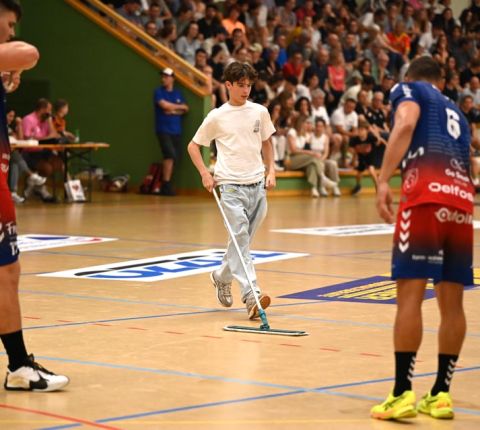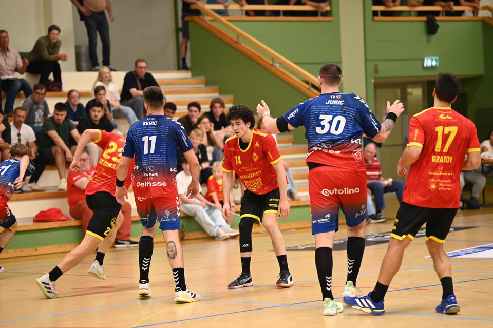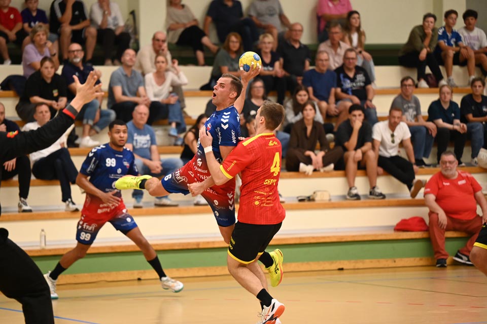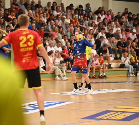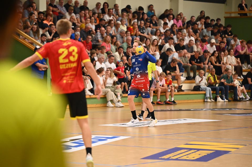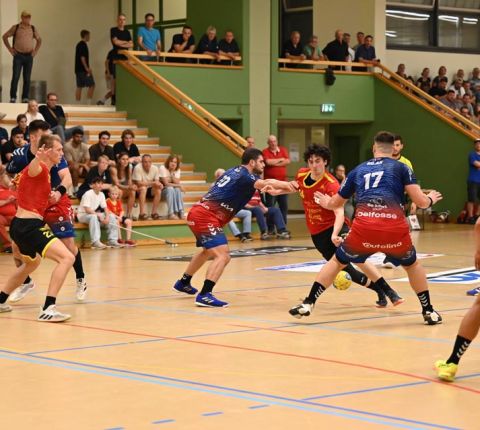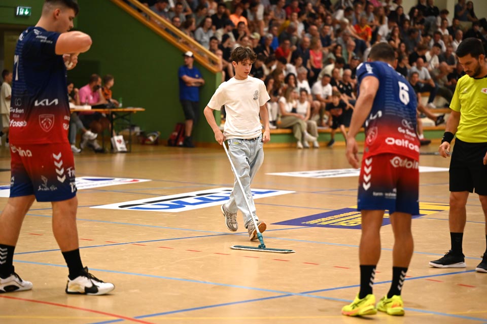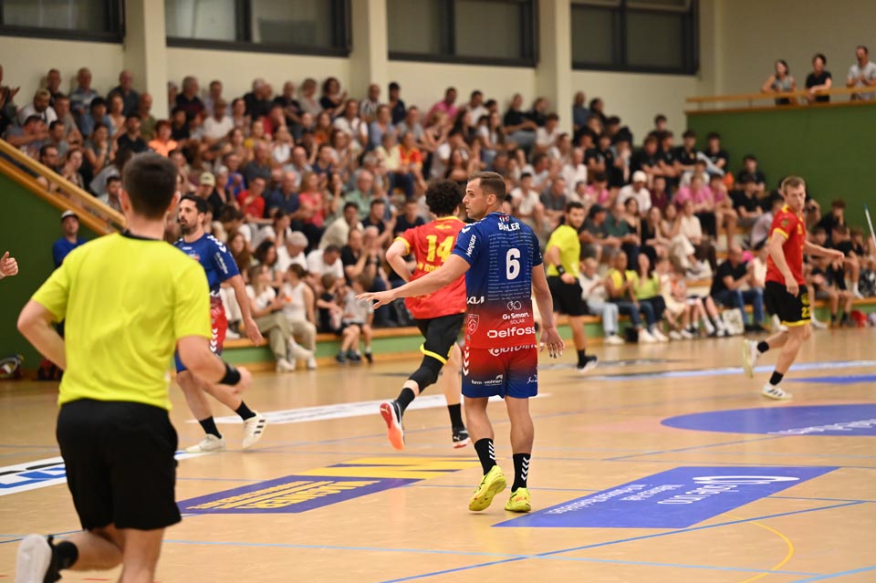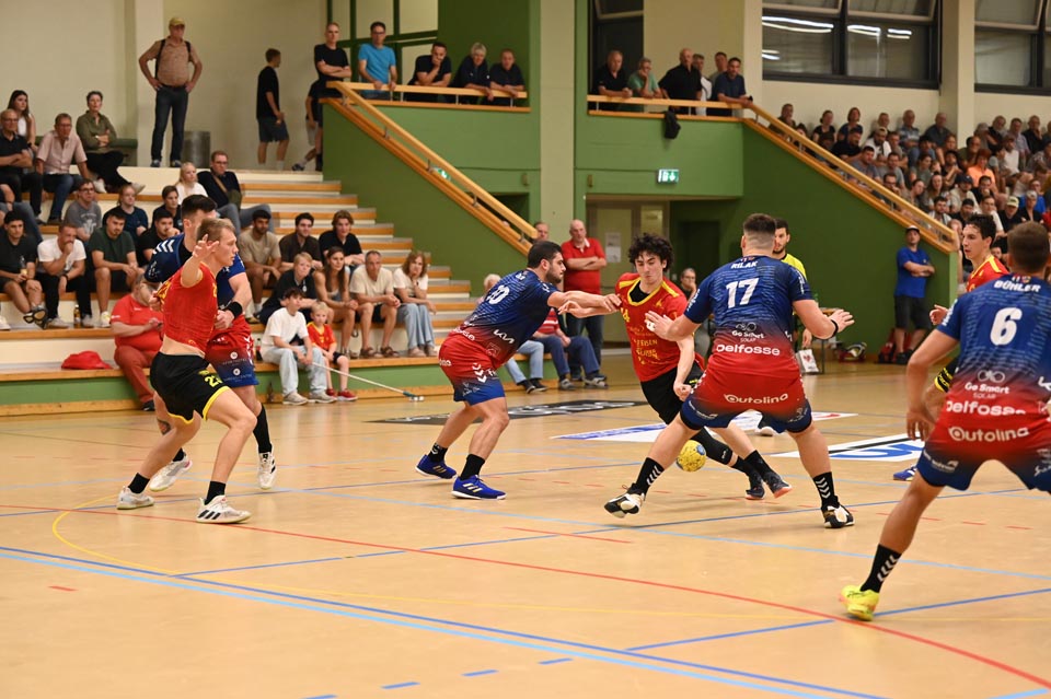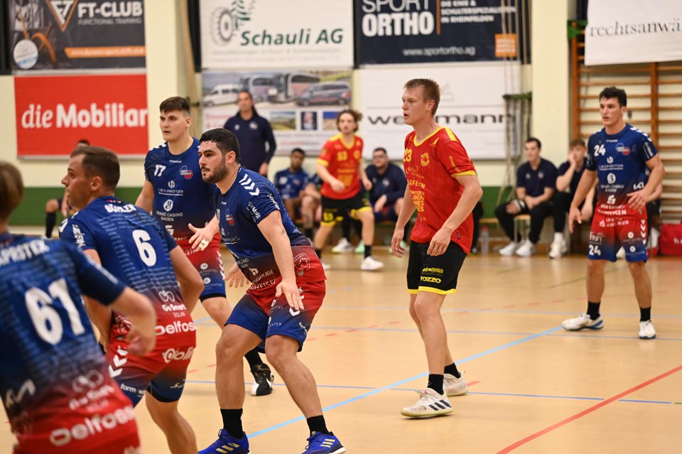Zu Beginn sah es noch vielversprechend für das Heimteam aus: Lucas Grandi erzielte das 3:1 (3.) und nach dem Anschlusstreffer von Marco Giovanelli, glänzte Robin Santeler mit der ersten Parade. Der Abpraller landete aber bei Baden-Endingen und Olufemi Onamade glich aus zum 3:3 (4.). Danach überlistete Pascal Bühler mal um mal die Möhliner Defensive und mit dem sechsten Treffer für Baden, setzte sich auch der gewichtige Kreisläufer Antonio Juric durch. Möhlin brauchte mehr Anläufe um einen Treffer zu erzielen, scheiterte aus dem Rückraum und auch vom Flügel. Aber der Abstand hielt sich in Grenzen und mit dem 9:10 durch Jan Waldmeier in der 13. Spielminute, kam wieder Hoffnung auf. Erneut war es Juric am Kreis, der aus dem Vollen schöpfen konnte, allerdings musste er danach die Zeitstrafe absitzen. Die Überzahl auf dem Feld, die der Gegner mit dem fehlenden Torhüter kompensierte, brachte keinen Treffer, dafür eine weitere Parade des Möhliner Keepers. Nach dem Timeout von Zoltan Majeri (16.) wuchs der Vorsprung für die Gäste weiter. Sie bestraften die Fehler des TVM gnadenlos und bejubelten ihre gelungenen Aktionen vor dem lautstarken Fricktaler Heimpublikum. Während die Ostaargauer individuell starke Spieler ein- und auswechseln konnten, musste Möhlin bescheidener haushalten und die Kräfte einteilen. Kam hinzu, dass nach der Zeitstrafe gegen Patrick Schweizer noch ein Wechselfehler passierte, der dem Heimteam die doppelte Unterzahl bescherte. Vanja Sehic erzielte den 20. Treffer zum 13:20-Pausenstand.