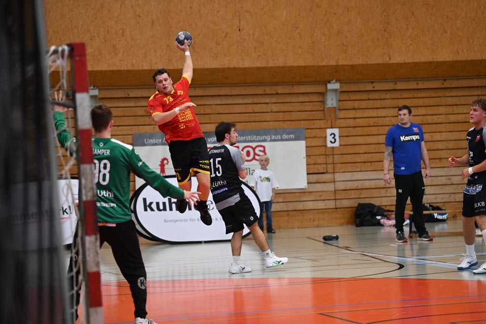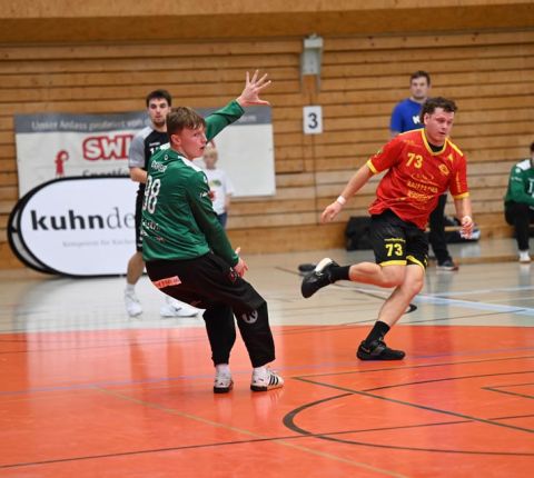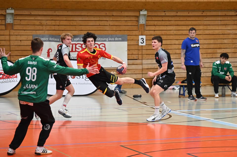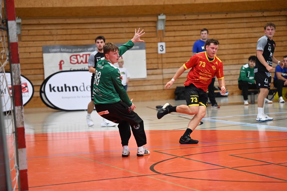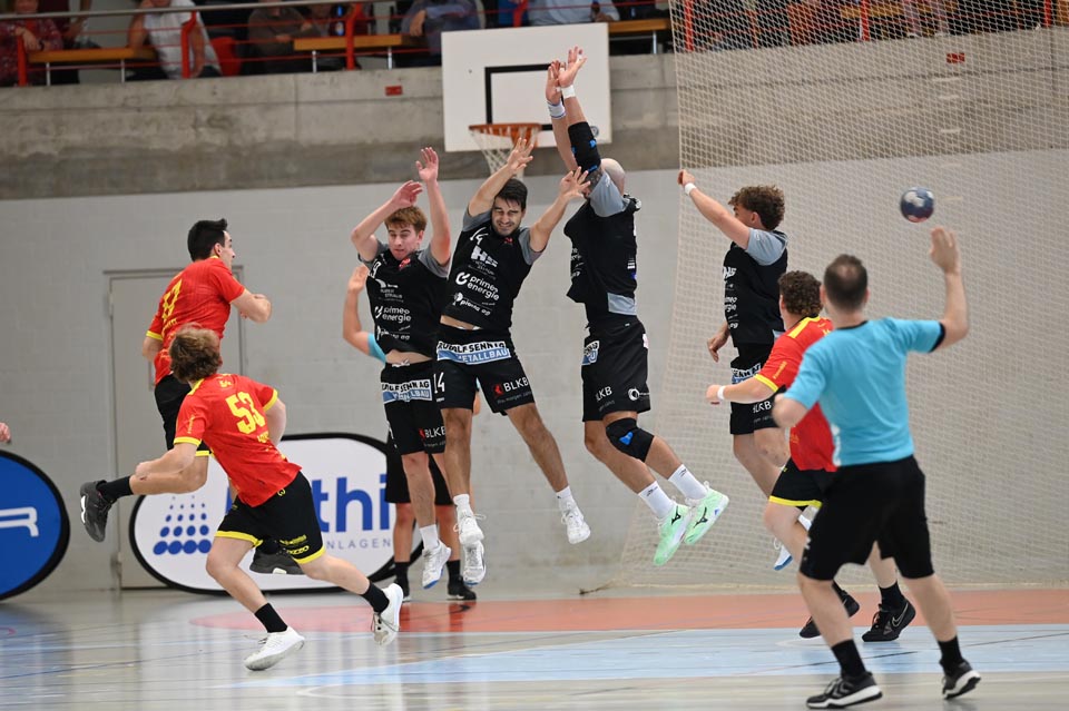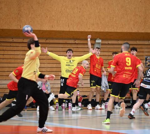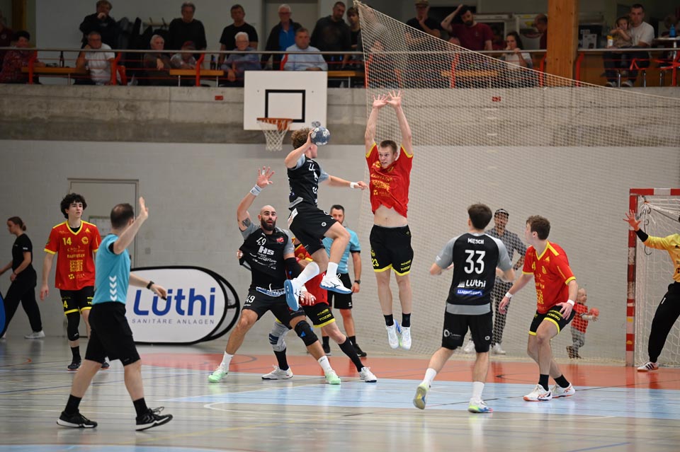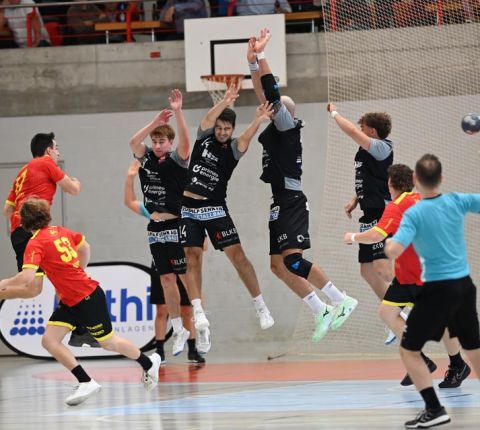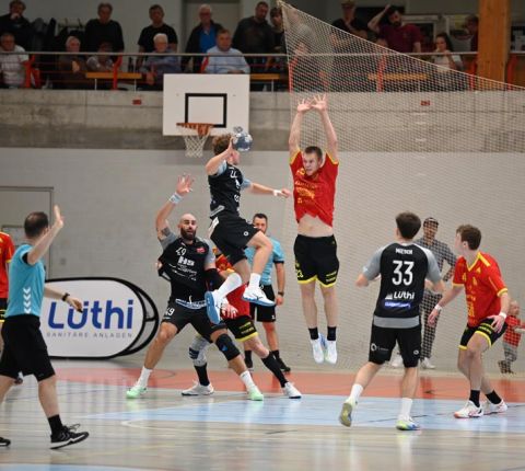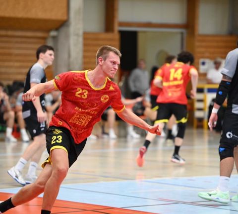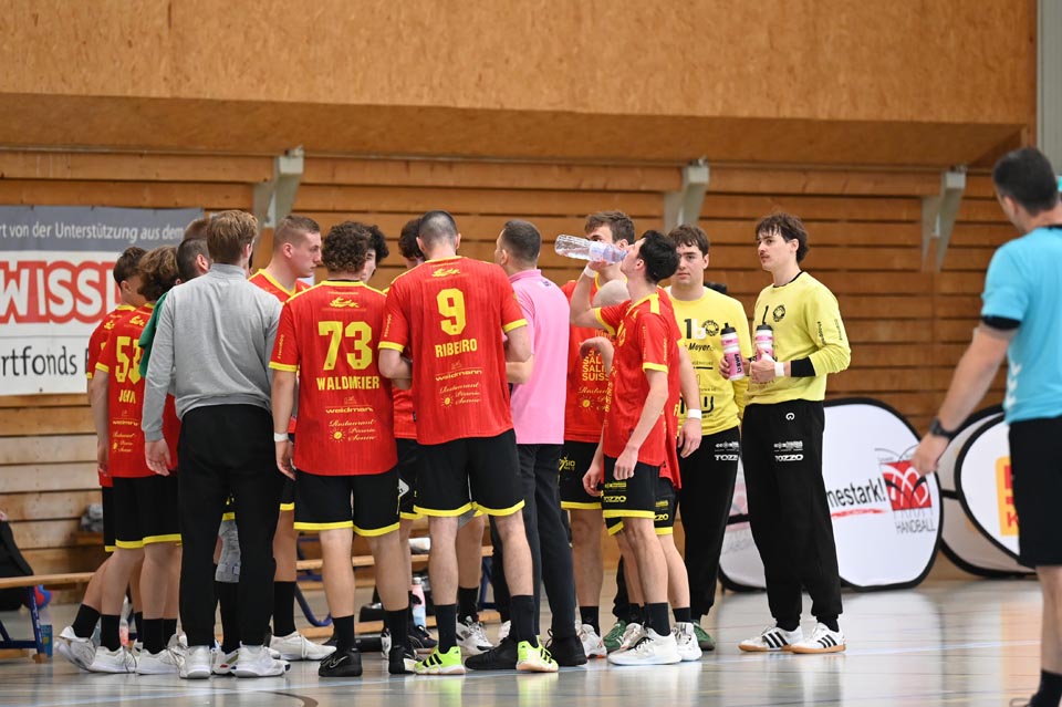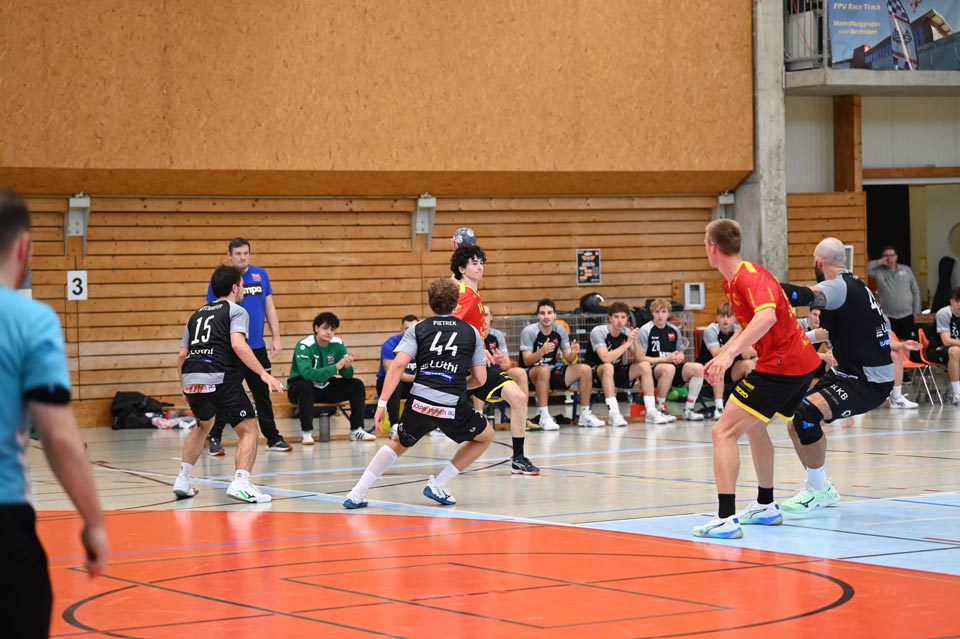 Gerade die Startphase verlief nicht ohne Fehler und der erste Siebenmeter blieb am gegnerischen Torhüter hängen. Auch eine frühe Zeitstrafe in der sechsten Minute beflügelte das Heimteam, welches durch Mak Ruhotina auf 3:2 stellte. Aber Möhlin nahm das gegnerische Tempo auf und glich aus, ging gar mit zwei Treffern in Führung (5:3, 10.). Möhlins Torhüter Robin Santeler machte bereits mit der einen oder anderen Parade auf sich aufmerksam, aber gegen den zwei-Meter grossen Martin Slaninka, der danach den Anschlusstreffer erzielte, musste auch Santeler hinter sich greifen. Stark dann die Aktion von Lucas Grandi, der in der 17. Minute nach Zeitspiel das 8:6 erzielte, aber auch Birsfelden überzeugte mit dem nächsten Tor von Slaninka und danach von Ariel Attenhofer zum erneuten Ausgleich. Sadok Ben Romdhane erhöhte, um kurz danach, wegen einer unglücklichen Aktion, auf die Bank zu müssen. Auch das folgende Klammern wurde mit der Zeitstrafe geahndet, Xavier Franceschi hing am «grossen» Kreisläufer der Birsfelder. Trotz doppelter Unterzahl hielt der TVM dagegen, nur um wenig später die nächste «Zwangsauszeit» zu erhalten. Drei Zeitstrafen innerhalb von drei Minuten Spielzeit, das warf schon ein paar Fragezeichen auf und brachte den Flow der Möhliner ins Stocken. Aber Treffer von Mitch Giezeman und Ruben Ribeiro, zuletzt zum 14:14 machten Mut. Birsfelden nutzte die verbleibende Minute vor der Pause mit dem Team-Timeout und erzielte mit dem Kempa durch Valentin Pietrek den Pausenstand von 15:14.