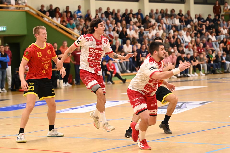 In der 43. Spielminute konnte das zahlreich erschienene Publikum einen tollen Treffer zum 19:15 durch Xavier Franceschi bejubeln. Aber noch blieb die mangelnde Chancenauswertung omnipräsent. Dafür leistete die Abwehr mit Mitch Giezeman im Zentrum überzeugende Arbeit, sie stand kompakt und eroberte sich mehrere Bälle. Nach dem 25:19 in der 52. Minute nahm Trainer Toni Kern die Auszeit. Grimsrud setzte um, was besprochen wurde und es folgten Tore auf beiden Seiten. Dreieinhalb Minuten vor dem Ende, beim 29:23, beorderte Zoltan Majeri seine Mannschaft an die Seitenlinie. Er wechselte den Nachwuchs ein und ermöglichte ihnen lehrreiche Minuten gegen das nicht nachlassende Auswärtsteam. Am Ende steht ein verdientes 31:24 auf der Anzeigetafel.