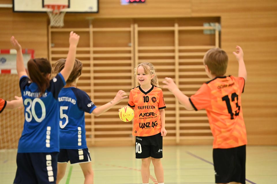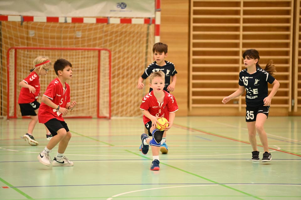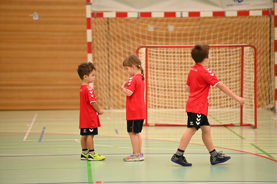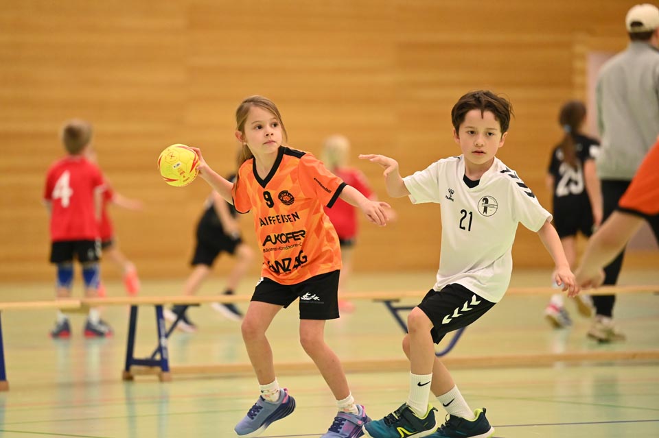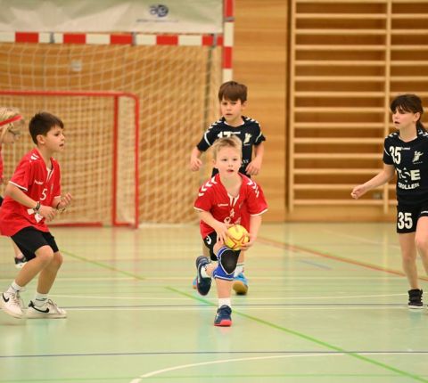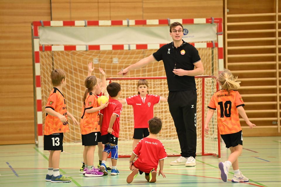 Am Mittag und Nachmittag durften die U9 und U11 ihr Können unter Beweis stellen, entweder in der Beginner-Kategorie mit Soft-Handball oder Schlumpfball, oder beim Minihandball der Challengers. Mit viel Spass, Schwung und Spielwitz wirbelten die Kinder übers Spielfeld. Je 13 Minuten, je zwei Tore, je zwei Mannschaften und ein Ball-mehr brauchte es nicht, um dem Nachwuchs die entsprechende Bühne zu geben. Die engagierten Coaches an der Seitenlinie unterstützten und munterten auf.