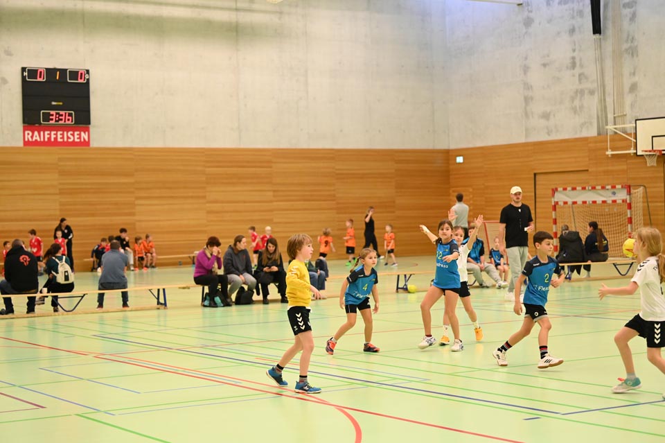 Am 30. November, am ersten Advent, verwandelte sich die neue Steinlihalle einmal mehr zu einem lebendigen Treffpunkt für den regionalen Handball-Nachwuchs. Bereits früh am Morgen herrschte reger Betrieb, denn insgesamt 43 Mannschaften waren gemeldet, also über 250 Kinder standen an diesem besonderen Tag im Einsatz. Eltern, Geschwister, Grosseltern, Freunde und zahlreiche Vereinsmitglieder rückten auf den Rängen dicht zusammen, um die Jüngsten zu unterstützen. Die Vorfreude war überall spürbar und der Geräuschepegel spätestens ab 8 Uhr auch.