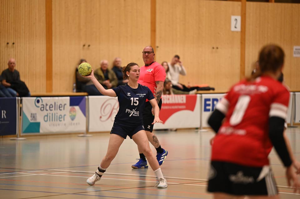 Die Devise für die zweite Halbzeit war klar: In der Abwehr aggressiver decken, vor allem gegen die wurfstarke Rückraumspielerin Stefanie Schäufele und im Angriff wurden mehr Ruhe und Konsequenz in den Abschlüssen gefordert. Dies konnte mehr oder weniger umgesetzt werden, wobei sich aber immer noch zu viele Fehler auf der Magdener Seite einschlichen. In der 49. Minute konnte das Heimteam mit 5 Toren wegziehen und man hatte den Eindruck, fortan lief es rund. Zudem mussten die Gegnerinnen ihre ersten Zwei- Minuten- Strafen aufschreiben und standen zeitweise in doppelter Unterzahl auf dem Feld. Zu diesem Zeitpunkt wären einfache Tore die Lösung gewesen, stattdessen wurden Schritt- oder Wurffehler gepfiffen. Die SG Oberwil/Binningen konnte wieder auf 23:20 aufholen. Aber die SG Magden/Möhlin/Pratteln blieb am Ball und von der linken Flügelseite konnte Larissa Mehr mit ihrer 6/6 Torquote glänzen. Spielendstand: 26:21.