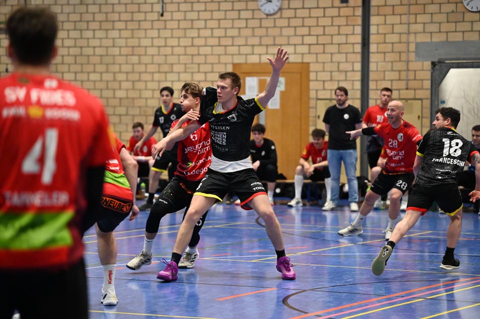 In der Anfangsphase, die sehr ausgeglichen verlief, brachte Lucas Grandi drei Treffer, danach ging der TV Möhlin ein erstes Mal kurz in Führung, ehe in der neunten Minute die erste Möhliner Zeitstrafe ausgesprochen wurde. Fides versuchte es immer wieder mit Tempospiel und schnellen Abschlüssen, aber noch legte der TV Möhlin vor. Die grösste Führung resultierte in der 25. Minute mit dem 15:12 durch Ardin Berisha. Der Vorsprung verflog bis zur Pause, eine überharte Zeitstrafe gegen Lucas Grandi und ein technischer Fehler, brachten das Heimteam wieder auf ein 17:17 heran.