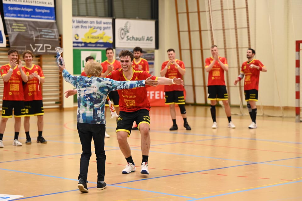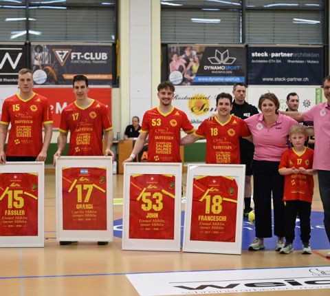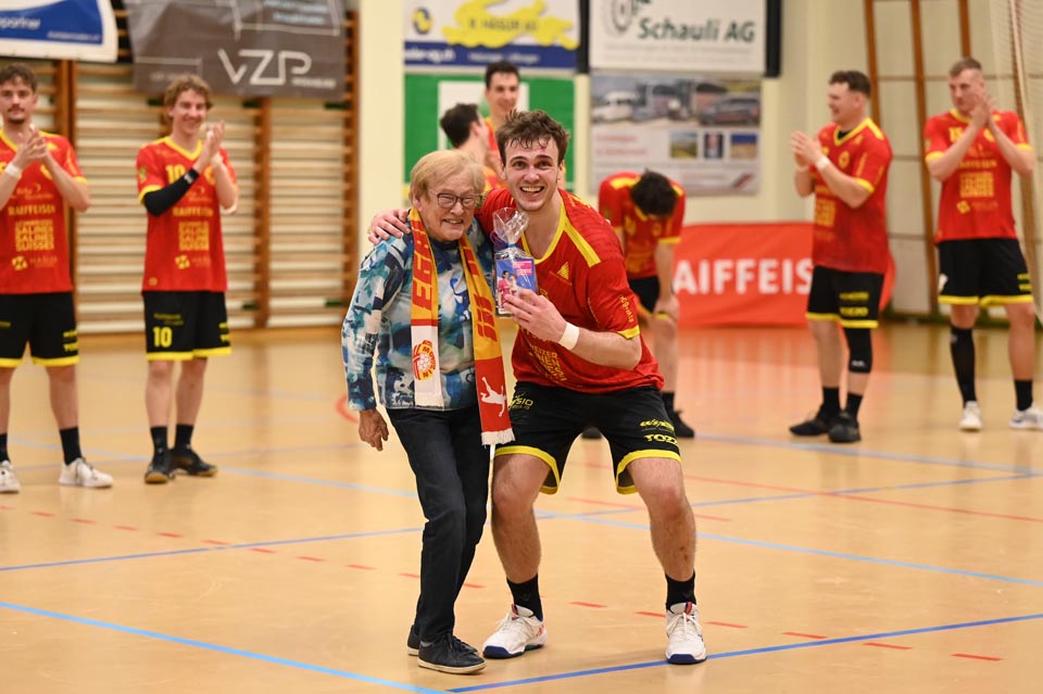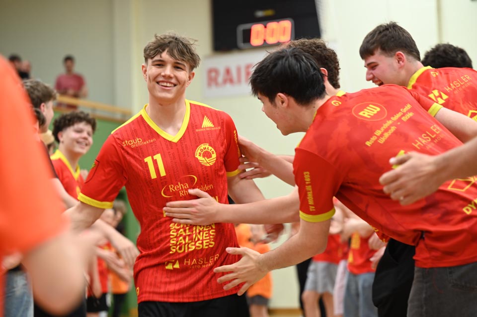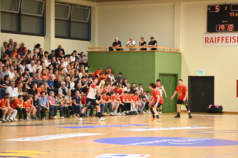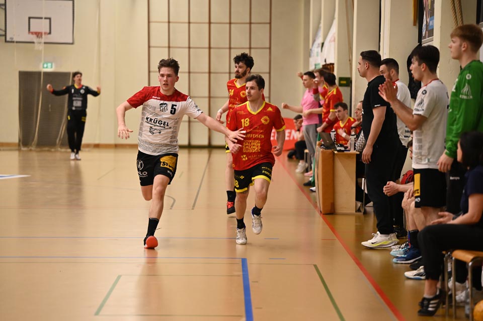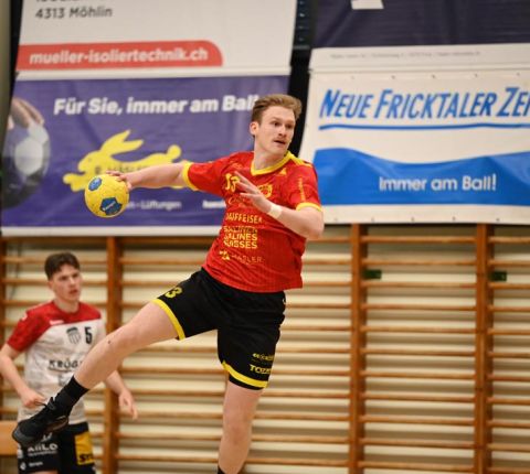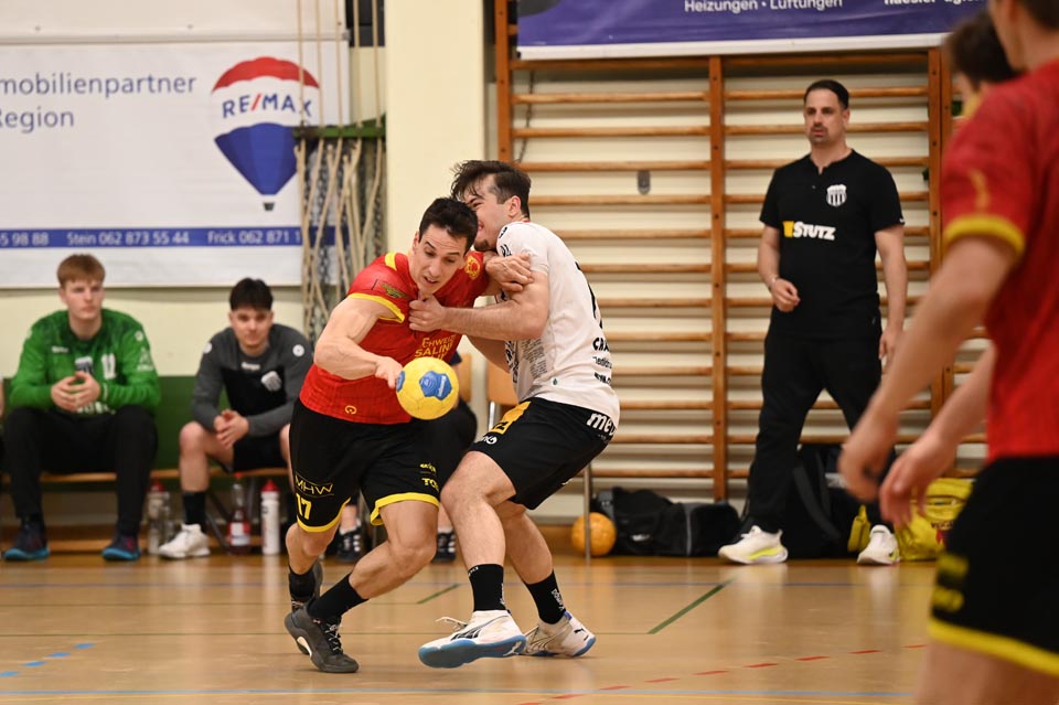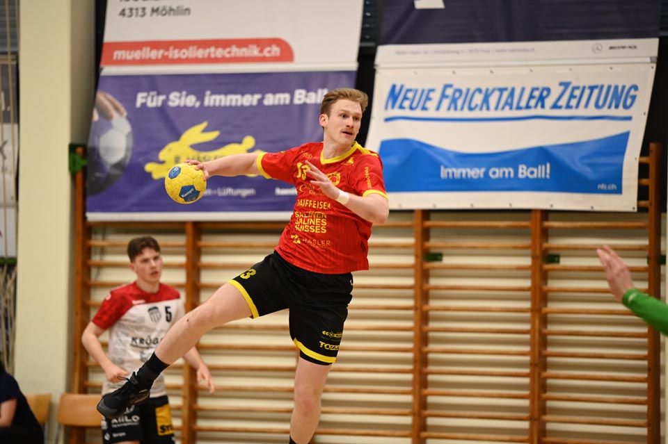Mehr als 400 Besucher kamen ins Steinli und boten eine tolle Kulisse für das letzte Saison-Heimspiel. Zu Beginn der Partie wurden vier Spieler feierlich verabschiedet: Lucas Grandi, Linus Fässler, Xavier Franceschi und Nelio John. Danach ging es zum sportlichen Teil über. Mit dem starken Torhüter der Gäste, Gustav Hein, bekundeten die Fricktaler zu Beginn und auch in der Folge sichtlich Mühe und scheiterten mehrmals frei vor dem grossgewachsenen Keeper. Kam noch das Pech mit dem Pfosten hinzu, sodass die Gäste auf 3:1 vorlegten (8.). Die Abwehrreihen schenkten sich nichts und vorne hielt erneut Hein gegen Finn Kreuzer und danach gegen Fabian Ceppi, erst in der 13. Minute notierte Kreuzer seinen ersten und einzigen Treffer in der Partie zum 4:5. Für ihn kam danach Xavier Franceschi auf die Platte. Nach einer ersten Zeitstrafe gegen die Gäste und den verwandelten Siebenmeter durch Sadok Ben Romdhane lief es offensiv erneut nicht nach Wunsch, was einen Drei-Tore-Rückstand bescherte (21.). Tor um Tor robbte sich Möhlin wieder heran, auch weil nun die Gäste fehlerhaft auftraten, einen Siebenmeter liegenliessen und mit dem taktischen Mittel des siebten Feldspielers nicht reüssierten. So traf Torhüter Robin Santeler zum 8:8 in der 26. Minute. Xavier Franceschi stellte auf 9:8. Danach kassierte Lucas Grandi eine Zeitstrafe. Die Winterthurer gingen abgebrüht und mit viel Einsatz zu Werke, was Möhlin viel Kraft und Schweiss kostete. Jan Waldmeiers präzis platzierter Wurf kurz vor der Pause brachte die knappe 11:10-Führung.