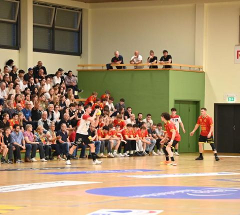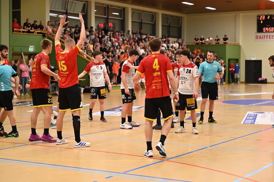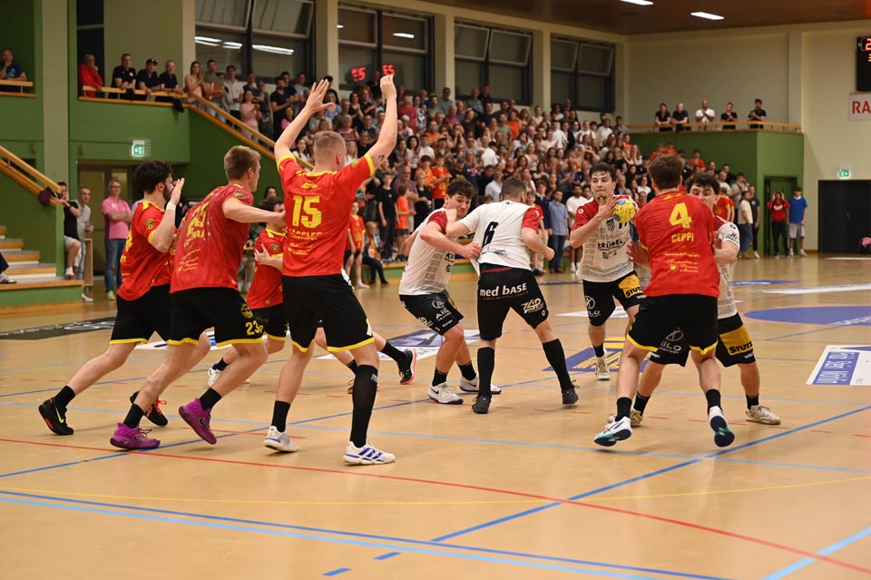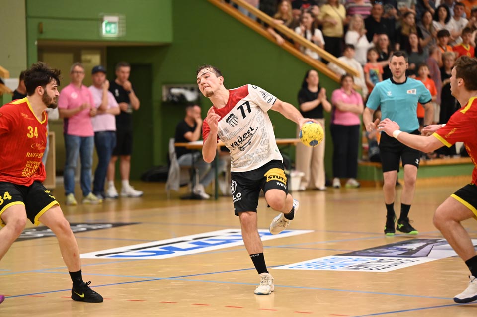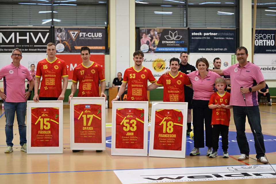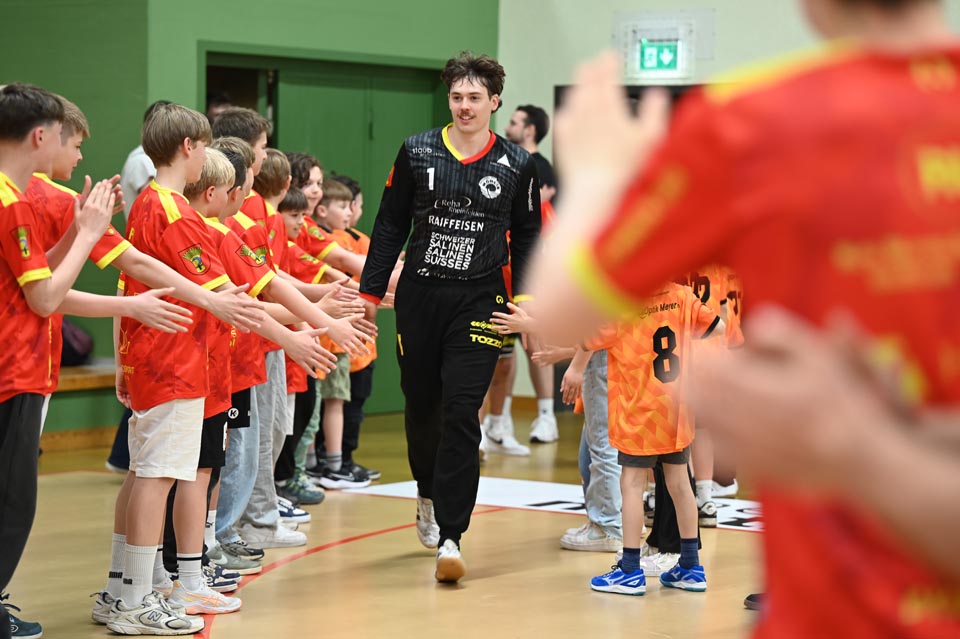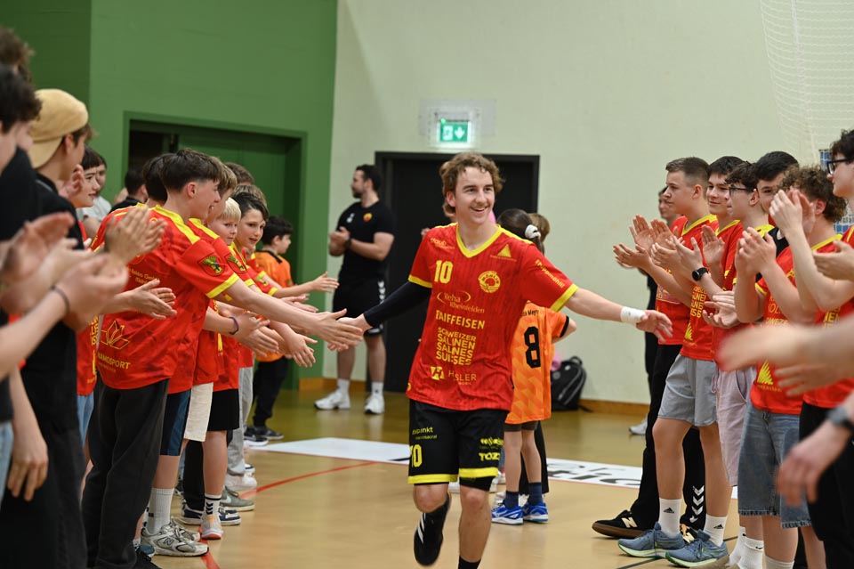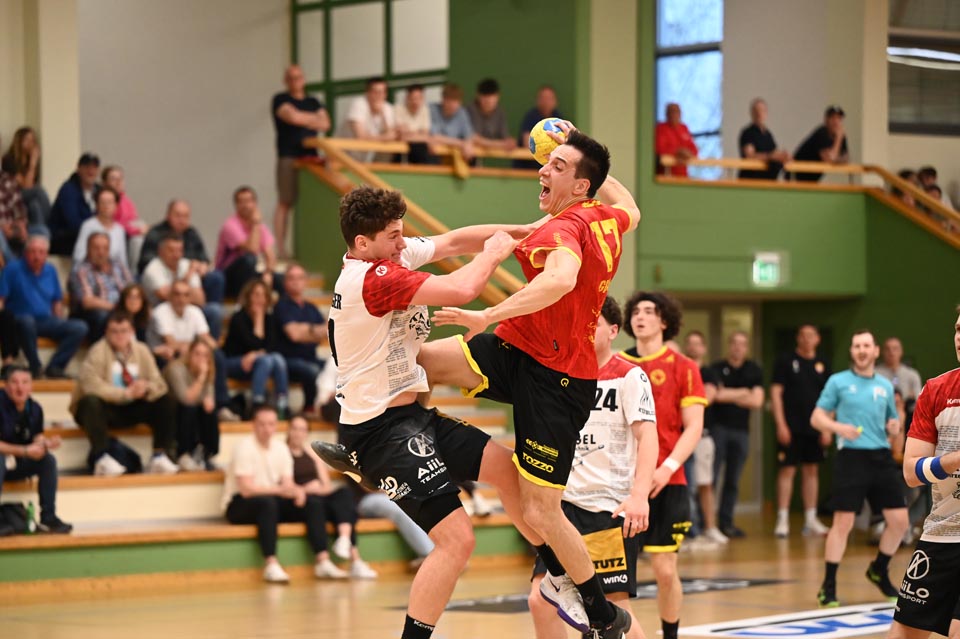 Mehr als 400 Besucher kamen ins Steinli und boten eine tolle Kulisse für das letzte Saison-Heimspiel. Zu Beginn der Partie wurden vier Spieler feierlich verabschiedet: Lucas Grandi, Linus Fässler, Xavier Franceschi und Nelio John. Danach ging es zum sportlichen Teil über. Mit dem starken Torhüter der Gäste, Gustav Hein, bekundeten die Fricktaler zu Beginn und auch in der Folge sichtlich Mühe und scheiterten mehrmals frei vor dem grossgewachsenen Keeper. Kam noch das Pech mit dem Pfosten hinzu, sodass die Gäste auf 3:1 vorlegten (8.). Die Abwehrreihen schenkten sich nichts und vorne hielt erneut Hein gegen Finn Kreuzer und danach gegen Fabian Ceppi, erst in der 13. Minute notierte Kreuzer seinen ersten und einzigen Treffer in der Partie zum 4:5. Für ihn kam danach Xavier Franceschi auf die Platte. Nach einer ersten Zeitstrafe gegen die Gäste und den verwandelten Siebenmeter durch Sadok Ben Romdhane lief es offensiv erneut nicht nach Wunsch, was einen Drei-Tore-Rückstand bescherte (21.). Tor um Tor robbte sich Möhlin wieder heran, auch weil nun die Gäste fehlerhaft auftraten, einen Siebenmeter liegenliessen und mit dem taktischen Mittel des siebten Feldspielers nicht reüssierten. So traf Torhüter Robin Santeler zum 8:8 in der 26. Minute. Xavier Franceschi stellte auf 9:8. Danach kassierte Lucas Grandi eine Zeitstrafe. Die Winterthurer gingen abgebrüht und mit viel Einsatz zu Werke, was Möhlin viel Kraft und Schweiss kostete. Jan Waldmeiers präzis platzierter Wurf kurz vor der Pause brachte die knappe 11:10-Führung.