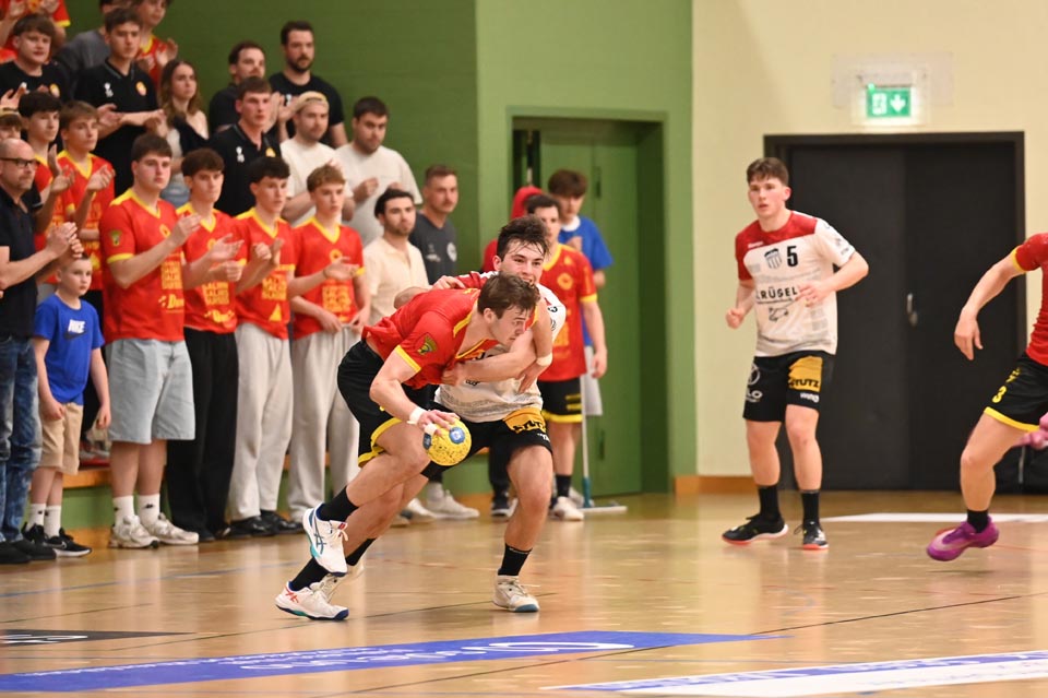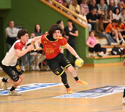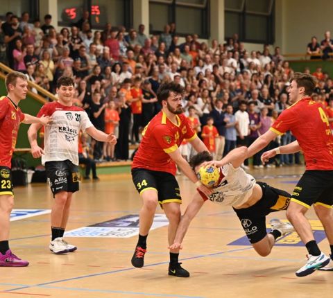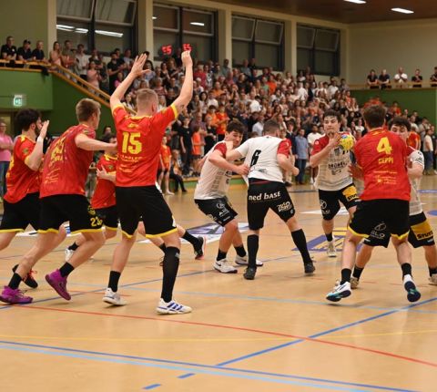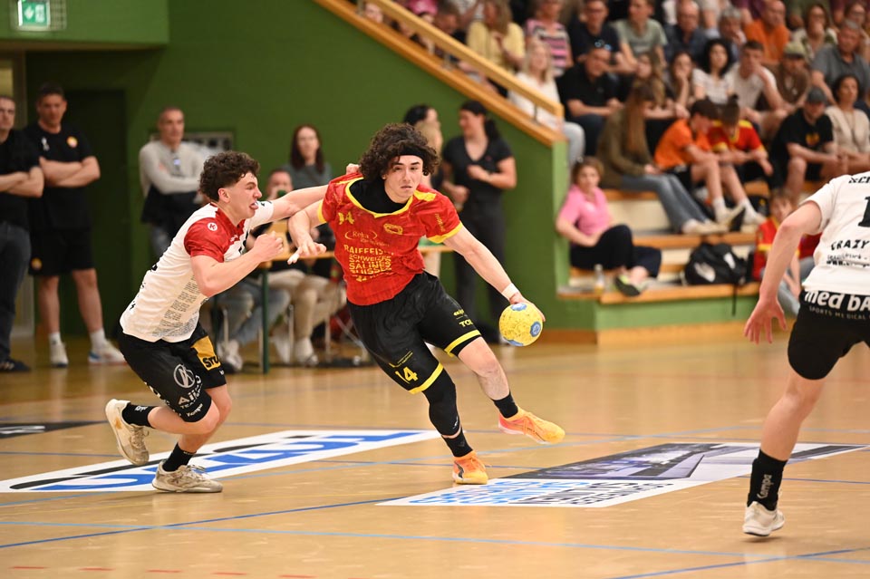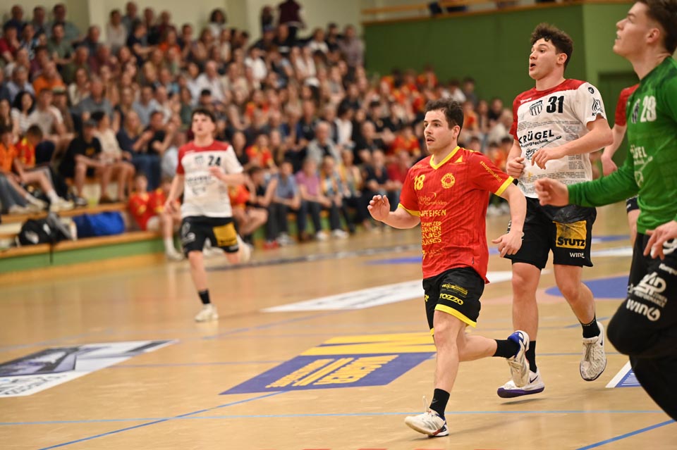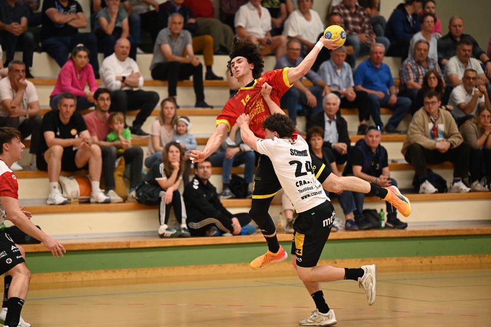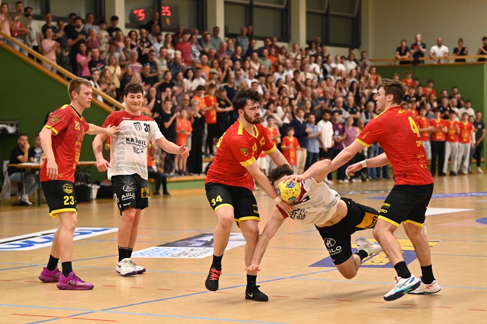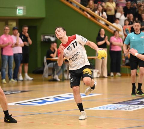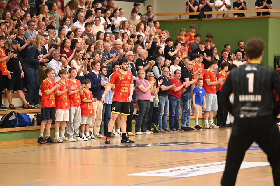 Mehr als 400 Besucher kamen ins Steinli und boten eine tolle Kulisse für das letzte Saison-Heimspiel. Zu Beginn der Partie wurden vier Spieler feierlich verabschiedet: Lucas Grandi, Linus Fässler, Xavier Franceschi und Nelio John. Danach ging es zum sportlichen Teil über. Mit dem starken Torhüter der Gäste, Gustav Hein, bekundeten die Fricktaler zu Beginn und auch in der Folge sichtlich Mühe und scheiterten mehrmals frei vor dem grossgewachsenen Keeper. Kam noch das Pech mit dem Pfosten hinzu, sodass die Gäste auf 3:1 vorlegten (8.). Die Abwehrreihen schenkten sich nichts und vorne hielt erneut Hein gegen Finn Kreuzer und danach gegen Fabian Ceppi, erst in der 13. Minute notierte Kreuzer seinen ersten und einzigen Treffer in der Partie zum 4:5. Für ihn kam danach Xavier Franceschi auf die Platte. Nach einer ersten Zeitstrafe gegen die Gäste und den verwandelten Siebenmeter durch Sadok Ben Romdhane lief es offensiv erneut nicht nach Wunsch, was einen Drei-Tore-Rückstand bescherte (21.). Tor um Tor robbte sich Möhlin wieder heran, auch weil nun die Gäste fehlerhaft auftraten, einen Siebenmeter liegenliessen und mit dem taktischen Mittel des siebten Feldspielers nicht reüssierten. So traf Torhüter Robin Santeler zum 8:8 in der 26. Minute. Xavier Franceschi stellte auf 9:8. Danach kassierte Lucas Grandi eine Zeitstrafe. Die Winterthurer gingen abgebrüht und mit viel Einsatz zu Werke, was Möhlin viel Kraft und Schweiss kostete. Jan Waldmeiers präzis platzierter Wurf kurz vor der Pause brachte die knappe 11:10-Führung.