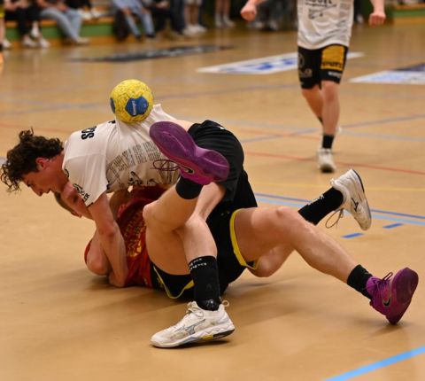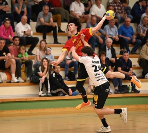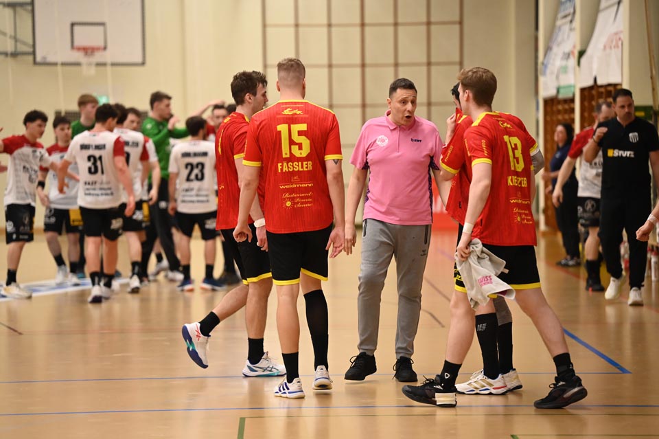 Im Angriff lief es wieder (15:12,36.), aber mit den sehr fragwürdigen Zeitstrafen gegen Lucas Grandi in der 32. Spielminute und wenig später in der 39. Minute, was der Ausschluss aus der Partie bedeutete, kamen die Männer von Zoltan Majeri ins Straucheln. Mit der überharten Reaktion zeigte die Spielleitung wenig Fingerspitzengefühl, zumal auf beiden Seiten unzimperlich und robust gekämpft wurde. Nach Grandis Ausscheiden musste Fabian Ceppi mehr Verantwortung übernehmen und seine Mitspieler in Szene setzen. Während Ben Romdhane zuverlässig vom Siebenmeter lieferte, übernahmen Ceppi und Waldmeier und zuletzt wieder Ben Romdhane und stellten auf 20:20 (52.). Der Linkshänder wurde in seinen Aktionen mehrmals durch Fouls gestoppt und musste einiges wegstecken. Die Gäste legten in der 53. Minute noch einmal mit schnellen Toren vor, ehe Möhlin den vorentscheidenden Ausgleich durch Ceppi und Ben Romdhane herbeiführte. Zu mehr reichte es nicht, die magere Toreffizienz rächte sich. Weil die Gäste auch nicht fehlerfrei spielten und ihre letzte Aktion in der Möhliner Abwehr hängenblieb, blieb immerhin noch ein Punkt im Steinli!