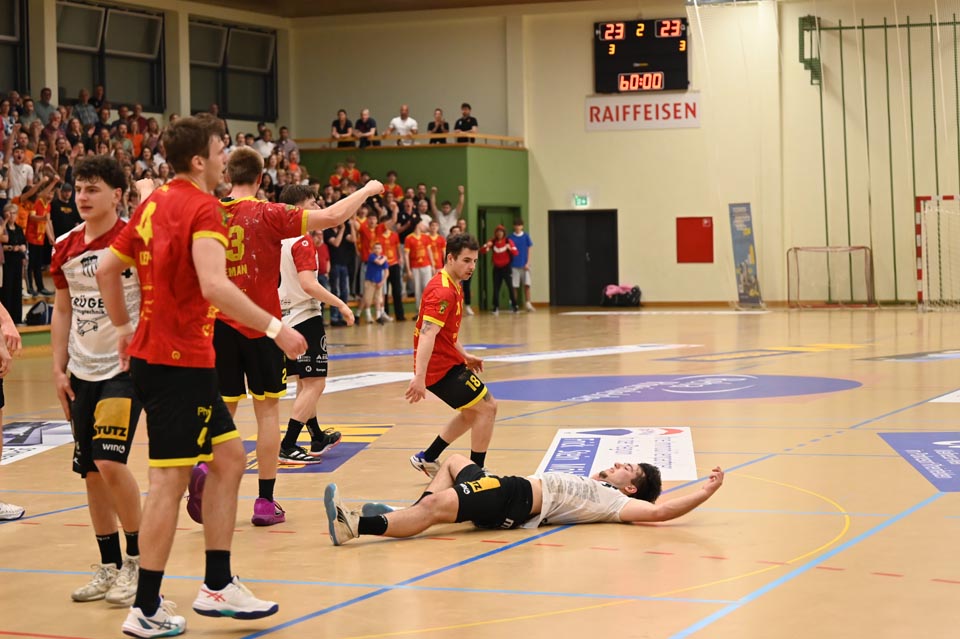 Die Erleichterung nach dem 23:23-Unentschieden gegen die SG Yellow/ Pfadi war den Spielern des TV Möhlin sichtlich anzumerken. Nach der knappen Pausenführung von 11:10, legten die Gäste mehrmals vor und sah es lange nicht nach einem Punktgewinn für das Heimteam aus.